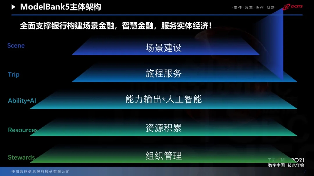 国家提出的信创工程,今年有120家银行单位参与到信创的试点当中,也为我们提出了新的命题,就是如何保证在科技架构下保障国家安全体系的建设。基于科技的变化以及银行业的变化,我们推出了ModelB@nk5.0。